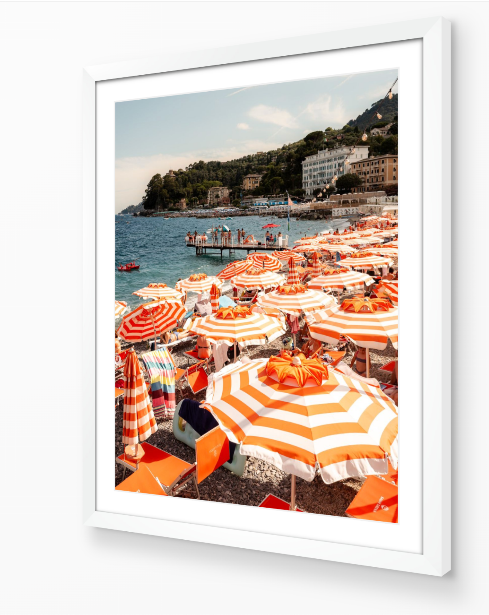 Photographed by Sam Smeaton, this fine-art print captures the energy and elegance of Mediterranean leisure - where design, colour, and rhythm come together in perfect balance. The rich contrast of citrus tones against the Ligurian Sea makes this piece an eye-catching focal point for any interior.