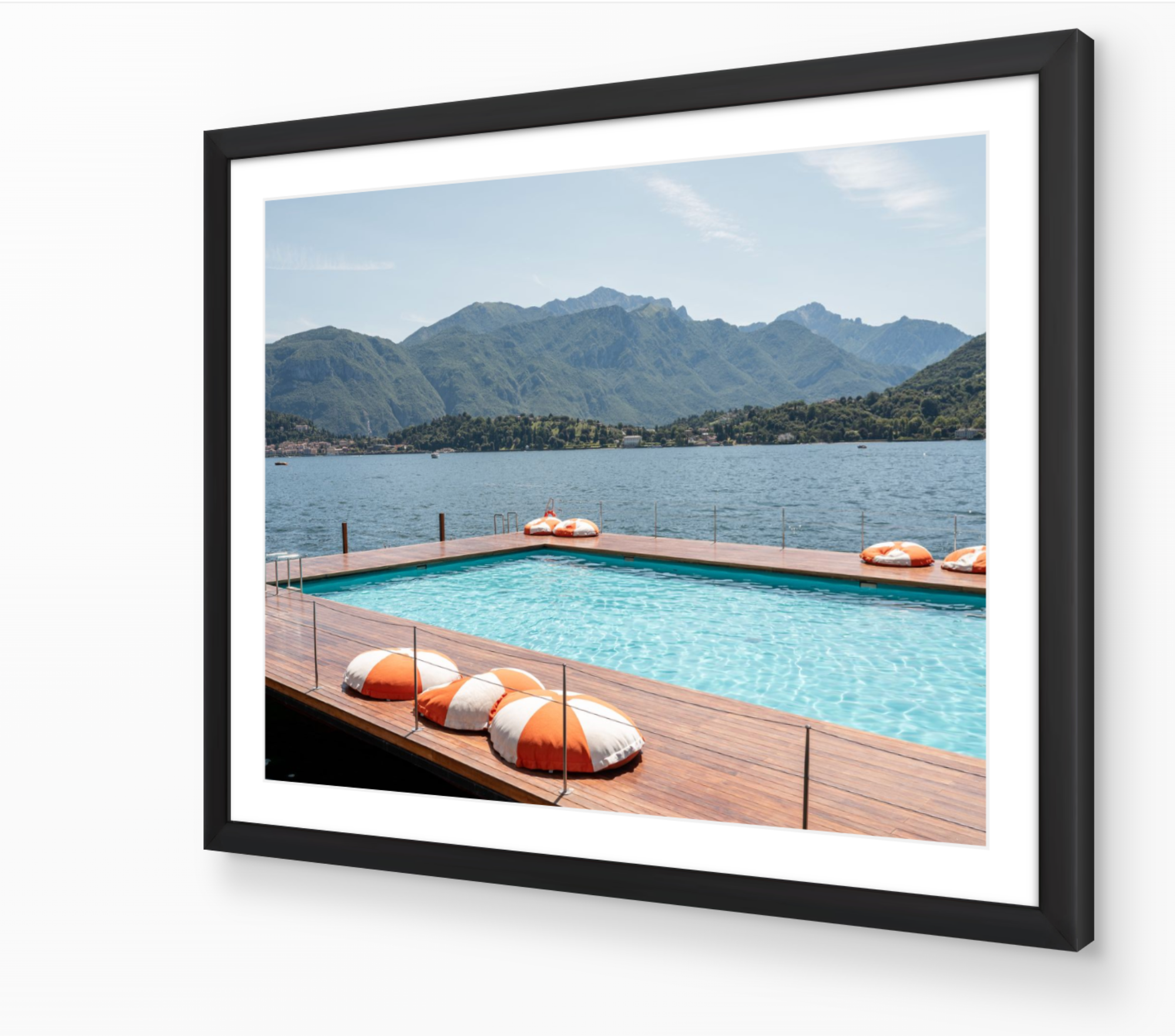 This fine art print evokes the effortless charm of summer days on Lake Como, blending timeless architecture with serene alpine views. Ideal for collectors who appreciate understated luxury and coastal calm.